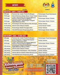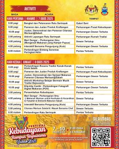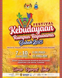 SABAH, 10 Ogos 2025 | Kementerian Pelancongan, Seni dan Budaya (MOTAC) dengan kerjasama Kerajaan Negeri Sabah dan Persatuan Rumpun Bajausama Sabah telah menganjurkan Festival Kebudayaan Rumpun Bajausama Sabah 2025 (FKRBSS2025) selama empat hari bermula 7 hingga 10 Ogos 2025 di Pusat Kebudayaan Rumpun Bajausama, Kampung Lok Batik, Tuaran, Sabah. Festival yang berlangsung dari 9.00 pagi hingga 11.00 malam setiap hari ini telah dirasmikan oleh